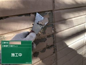 本日は剥離のあった塗膜や傷んだ目地のシーリングを撤去し