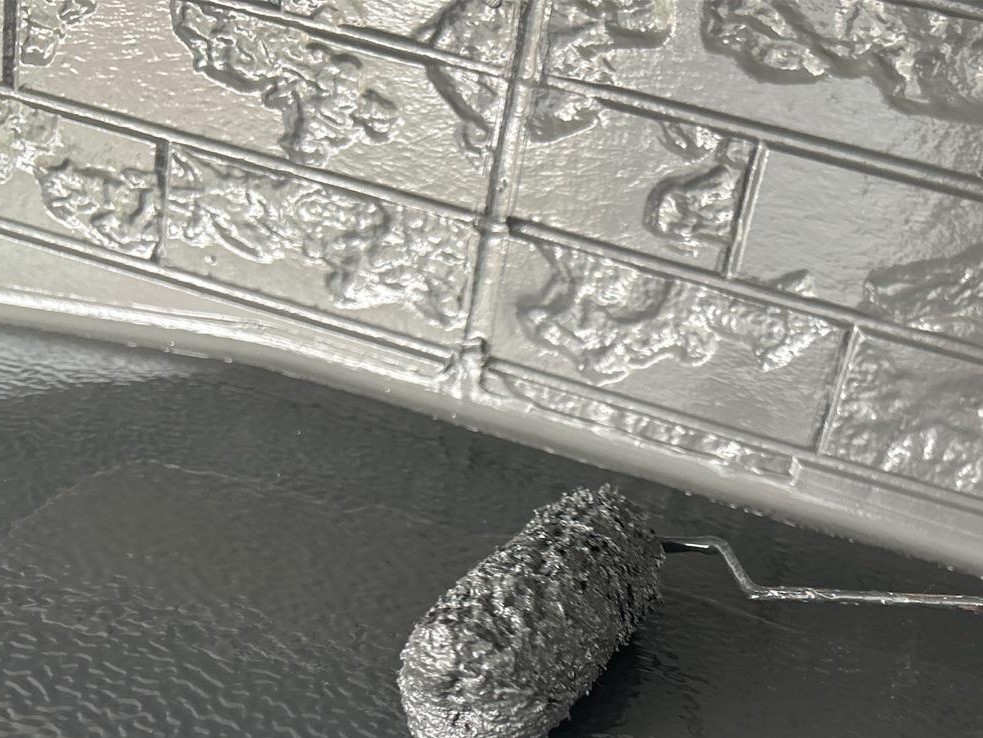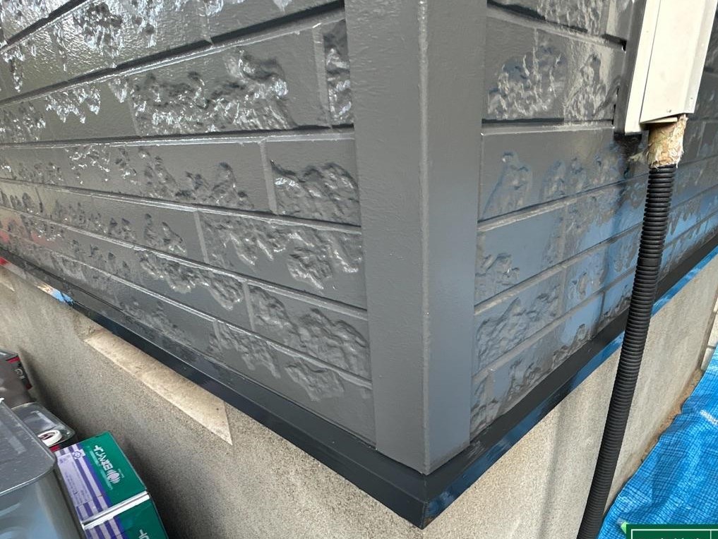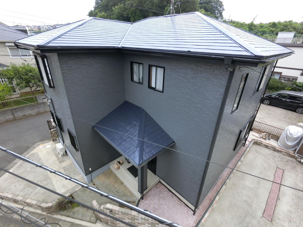 「スレートグレー」で塗装しました。渋くて素敵な色です!。付帯部は「チャコール」になります。