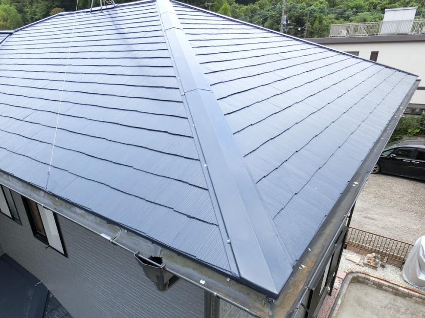 苔が目立っていた屋根も「ミッドナイトブルー」で塗装し、ピカピカです!